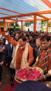 कार्यक्रम के संयोजक उमेश अग्रवाल फाउंडेशन के अध्यक्ष सिद्धार्थ अग्रवाल ने सभी अतिथियों एवं मुख्यमंत्री धामी का कोटि-कोटि धन्यवाद करते हुए कहा कि मुख्यमंत्री की प्रेरणा से ही यह फाउंडेशन लगातार समाज हित में समाज के प्रत्येक वर्ग में काम कर रहा है हमने कोरोना काल से लेकर आज तक अनेकानेक कार्य जन समर्पित किए हैं । हमने 71000 वैक्सीन, 10000 से अधिक निशुल्क चश्मा, 92 व्हीलचेयर जरूरतमंदों को दी है। 11000 से अधिक कन्याओं का पूजन कर प्रदेश की सुख समृद्धि की कामना भी की है। लगातार यह फाउंडेशन पर्यावरण को देखते हुए आपके ही माध्यम से 11000 पौधों का रोपण कर पर्यावरण सुरक्षा कार्य किया है।