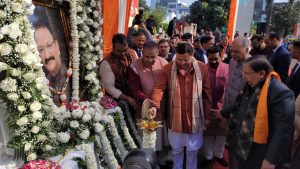 मातृ पितृ भक्त दिवस के अवसर पर प्रदेश के मुखिया युवा मुख्यमंत्री पुष्कर सिंह धामी एवं अतिथियों ने भाजपा वरिष्ठ नेता स्वर्गीय उमेश अग्रवाल के चित्र पर पुष्प अर्पित कर श्रद्धा सुमन अर्पित किए।
