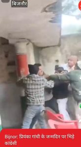 बिजनौर ,12 जनवरी 2026,बिजनौर में सोमवार को कांग्रेस नेता और वायनाड से पार्टी की सांसद प्रियंका गांधी के जन्मदिन के मौके पर आयोजित कार्यक्रम के दौरान हंगामा हो गया. प्रियंका गांधी का जन्मदिन मनाने के लिए कांग्रेस कार्यकर्ता और स्थानीय नेता पार्टी कार्यालय पर इकट्ठा हुए थे. कार्यक्रम में केक काटने के बाद फोटो सेशन चल रहा था.