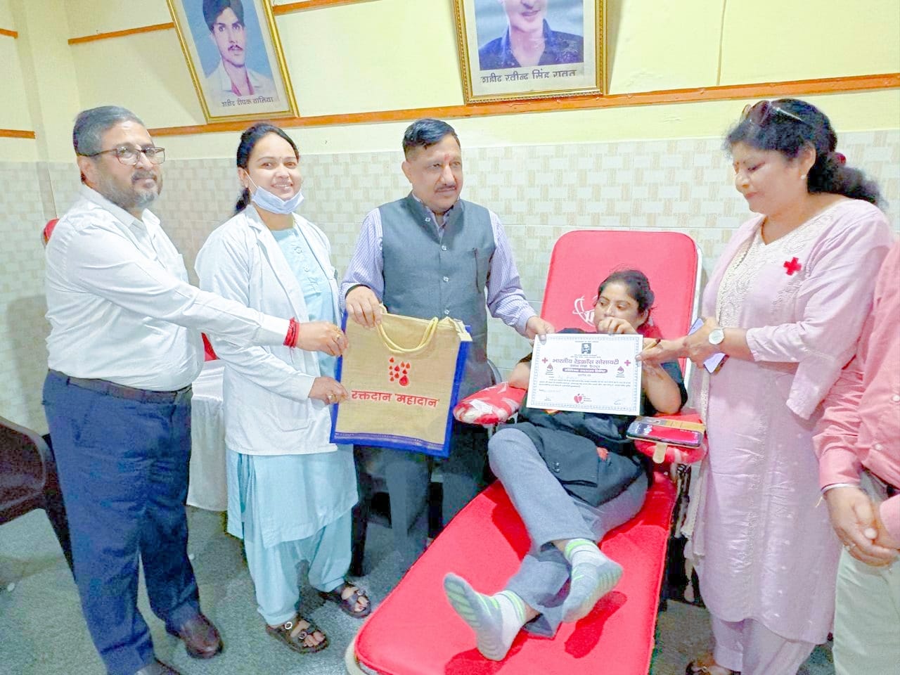 मुख्य चिकित्सा अधिकारी डॉक्टर मनोज शर्मा ने बलिदानियों के चित्र पर पुष्प अर्पित कर श्रद्धांजलि अर्पित की। रक्त एकत्र करने हेतु दून मेडिकल कॉलेज की टीम उपस्थित थी और 34 यूनिट रक्त एकत्र किया गया।