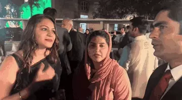 पाकिस्तान हाई कमीशन की 28 मार्च 2024 को दिल्ली में हुई इफ्तार पार्टी में एंबेसी के अधिकारी दानिश और उसकी पत्नी के साथ बात करती ज्योति।