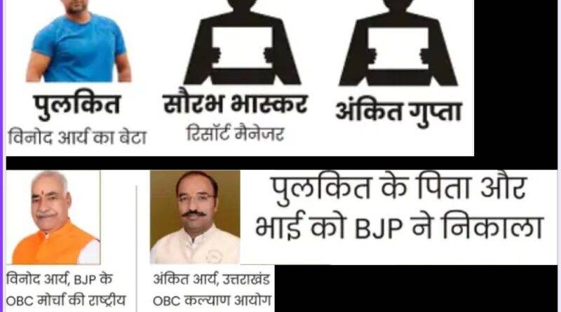 पुलकित आर्य BJP नेता और पूर्व मंत्री विनोद आर्य का बेटा है। तीनों आरोपित 18 सितंबर की शाम अंकिता को बाइक से कहीं ले गए थे। वे वापस आए तो अंकिता साथ नहीं थी। ये बात रिसॉर्ट के एक कर्मचारी ने बताई है।