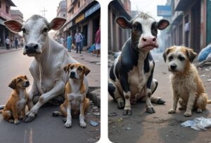 नतीजा? गाय और कुत्ते दोनों को ही कष्ट उठाते है, इंसान कीमत चुकाते हैं, और निराश्रित को भारतीय प्रेम की ‘भावुक कहानी’ दुखद हास्य बनकर रह जाती है.
