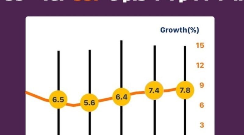 भारत की जीडीपी ग्रोथ दर पहली तिमाही में 7.8% रही,जो देश की तेजी से बढ़ती आर्थिक ताकत को दर्शाती है। कृषि क्षेत्र ने पहली तिमाही में 3.7 प्रतिशत की ग्रोथ दर्ज की,जो पिछले साल की तुलना में काफी बेहतर है। सर्विस सेक्टर की ग्रोथ दर 9.3 प्रतिशत रही,जो उम्मीद से अधिक और पिछले वर्ष से बेहतर प्रदर्शन दिखाती है