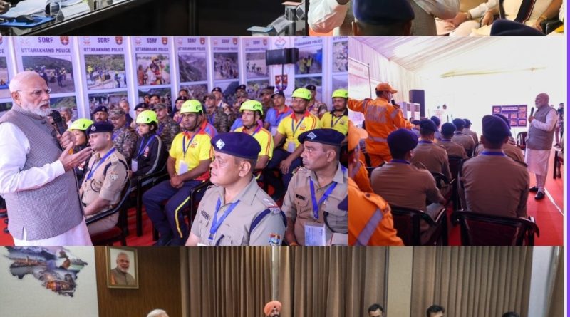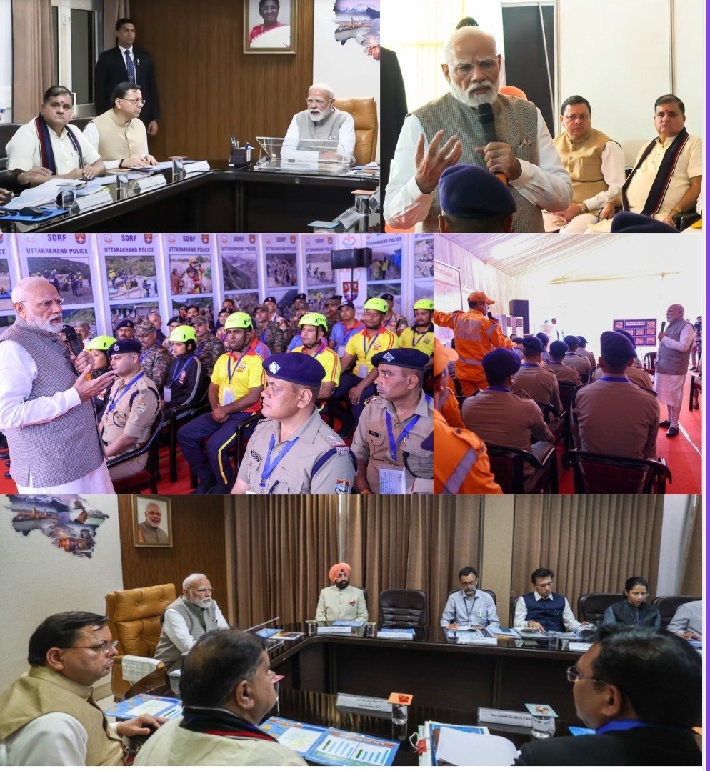 उत्तराखंड में प्राकृतिक आपदा से हुई हानि का आकलन करने पहुंचे प्रधानमंत्री नरेंद्र मोदी ने गुरुवार को जौलीग्रांट एअरपोर्ट पर आपदा राहत कार्यों की गहन समीक्षा की। प्रधानमंत्री मोदी ने इसमें अलग-अलग क्षेत्रों में आपदा से हुई हानि की विस्तार से जानकारी लेने के साथ ही राहत एवं बचाव कार्यों की ताजा स्थिति और भविष्य की चुनौतियों पर राज्यपाल लेफ्टिनेंट जनरल गुरमीत सिंह (सेवानिवृत्त ), मुख्यमंत्री पुष्कर सिंह धामी, केन्द्रीय राज्य मंत्री अजय टम्टा तथा राज्य के सभी सांसदों सहित वरिष्ठ अधिकारियों के साथ विचार-विमर्श किया। प्रधानमंत्री नरेंद्र मोदी ने धराली, थराली सहित राज्य के आपदा प्रभावित अन्य क्षेत्रों में संचालित राहत एवं बचाव अभियानों में एनडीआरएफ, एसडीआरएफ सहित राज्य सरकार के विभिन्न विभागों के प्रयासों की सराहना की और राहत बचाव कार्यों में जुटे राज्य व केन्द्र सरकार के संगठनों के कार्मिकों से भेंट कर उनके अनुभव सुने-समझे । प्रधानमंत्री नरेंद्र भाई मोदी ने आपदा पीड़ितों से भी मुलाकात कर उनका ढांढस बंधाने के साथ ही समुचित मदद का भरोसा दिलाया।
