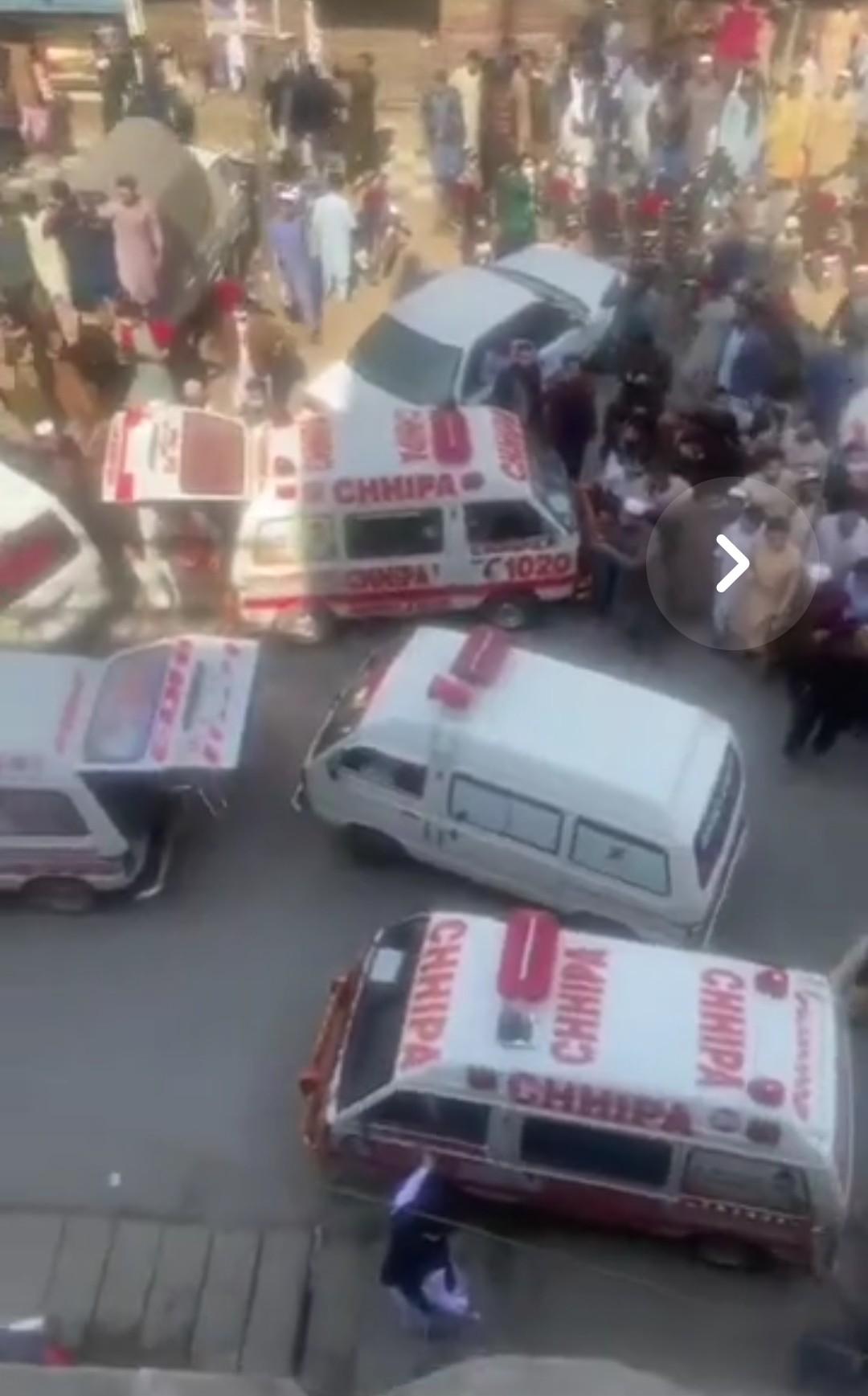 ब्लास्ट में घायल नमजियों को एंबुलेंस से अस्पताल भेजा गया, इनमें से 10 की हालत गंभीर है।