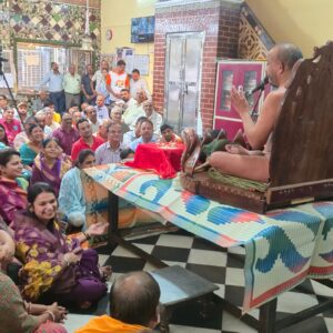 प्रातः 8:30 से 9:30 बजे तक मंदिर में आचार्य श्री का मंगल प्रवचन आयोजित हुआ। अपने सारगर्भित प्रवचनों में आचार्य श्री ने कहा “रावण के भीतर इगो था – जब तक इगो रहता है, ईश्वर बाहर रहता है। ई मतलब ईश्वर और गो मतलब जाना। जब भीतर कुछ और और बाहर कुछ और होता है, तो मन विचलित रहता है। इंसान का आत्मविश्वास सही दिशा में हो, यह जरूरी है। आज की राजनीति और धर्मनीति शर्तों पर आधारित हो गई हैं, जिससे मनुष्य के अंदर षडयंत्रों का जागरण होता है।” जिसके फल स्वरुप परिवार का समाज का विघटन होता है।जो नहीं होना चाहिए सही और गलत की पहचान भी गुरुओं के संतो के संगति और संगत से आभास होती हैं। जिससे हम कई तरह की विसंगतियों से दूर रहकर गुरु हमारा सही मार्ग प्रशस्त करते हैं