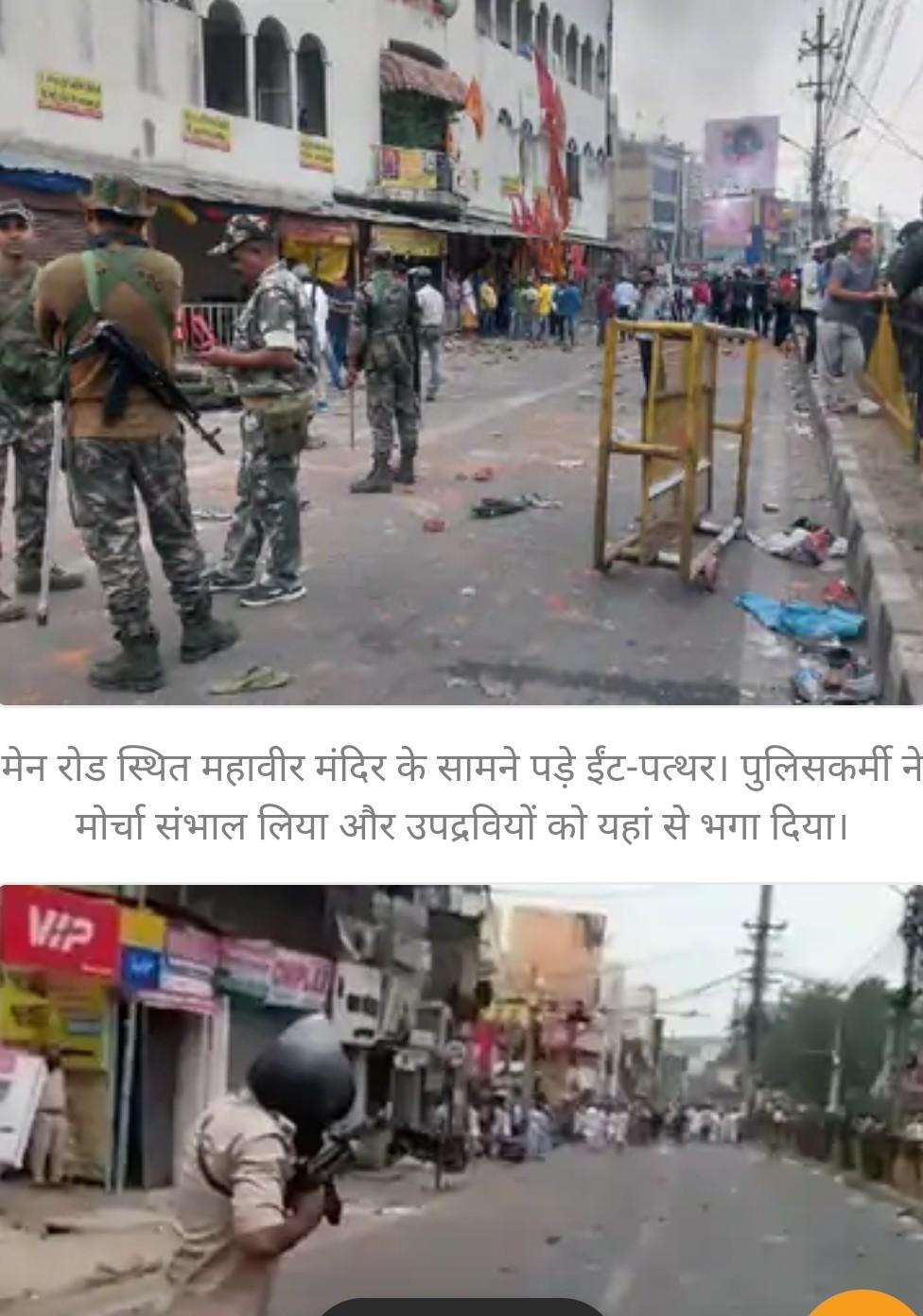 महावीर मंदिर पर पत्थरबाजी के दौरान जान बचाने के लिए लोग मंदिर में छिप गए। पुलिस ने भीड़ को काबू करने के लिए लाठीचार्ज और आंसू गैस के गोले दागे। हवाई फायरिंग भी की। भीड़ ने विधायक अमित यादव के गाड़ी के कांच फोड़ दिए। मुस्लिम संगठन शुक्रवार को BJP से निष्कासित प्रवक्ता नुपूर शर्मा के बयान का विरोध कर रहे थे।