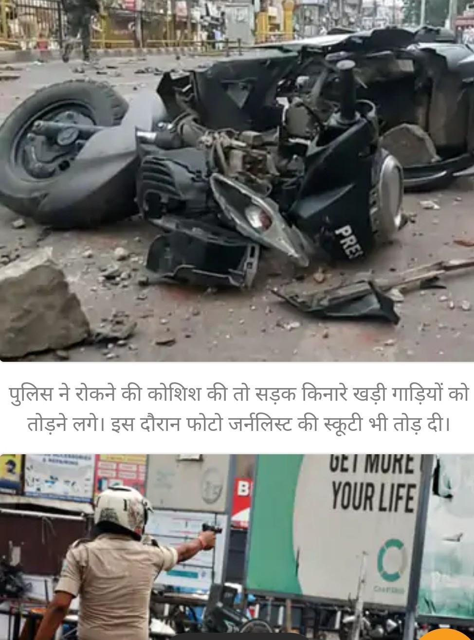 पुलिस ने रोकने की कोशिश की तो सड़क किनारे खड़ी गाड़ियां तोड़ने लगे। इस दौरान फोटो जर्नलिस्ट की स्कूटी भी तोड़ दी।