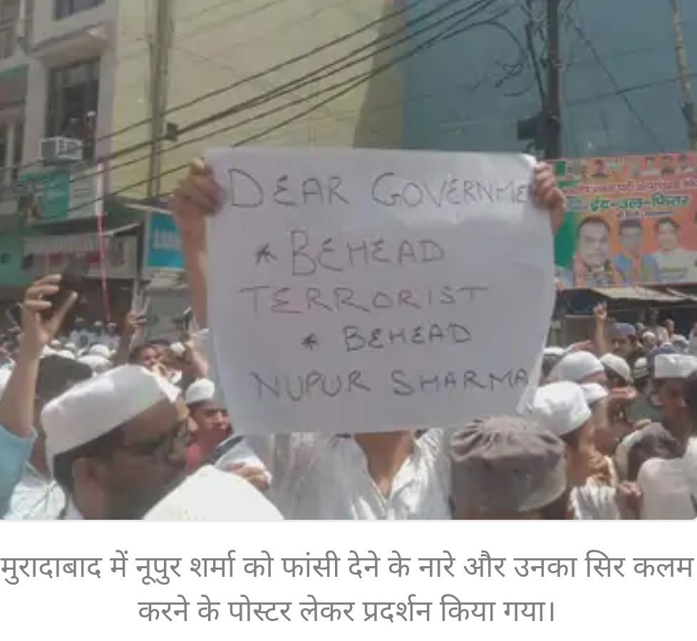 हाथरस के कस्बा पुरदिलनगर में जुमे की नमाज के बाद मुस्लिम ने जुलूस निकाला। जलेसर रोड अंबेडकर मूर्ति चौराहे पर नुपुर शर्मा का पुतला फूूंका । पुलिस पर भीड़ ने पथराव किया। इसमें एक पुलिसकर्मी घायल है। हाथरस में पुलिस ने बिना अनुमति विरोध प्रदर्शन और नारेबाजी में आठ लोगों को हिरासत में लिया।