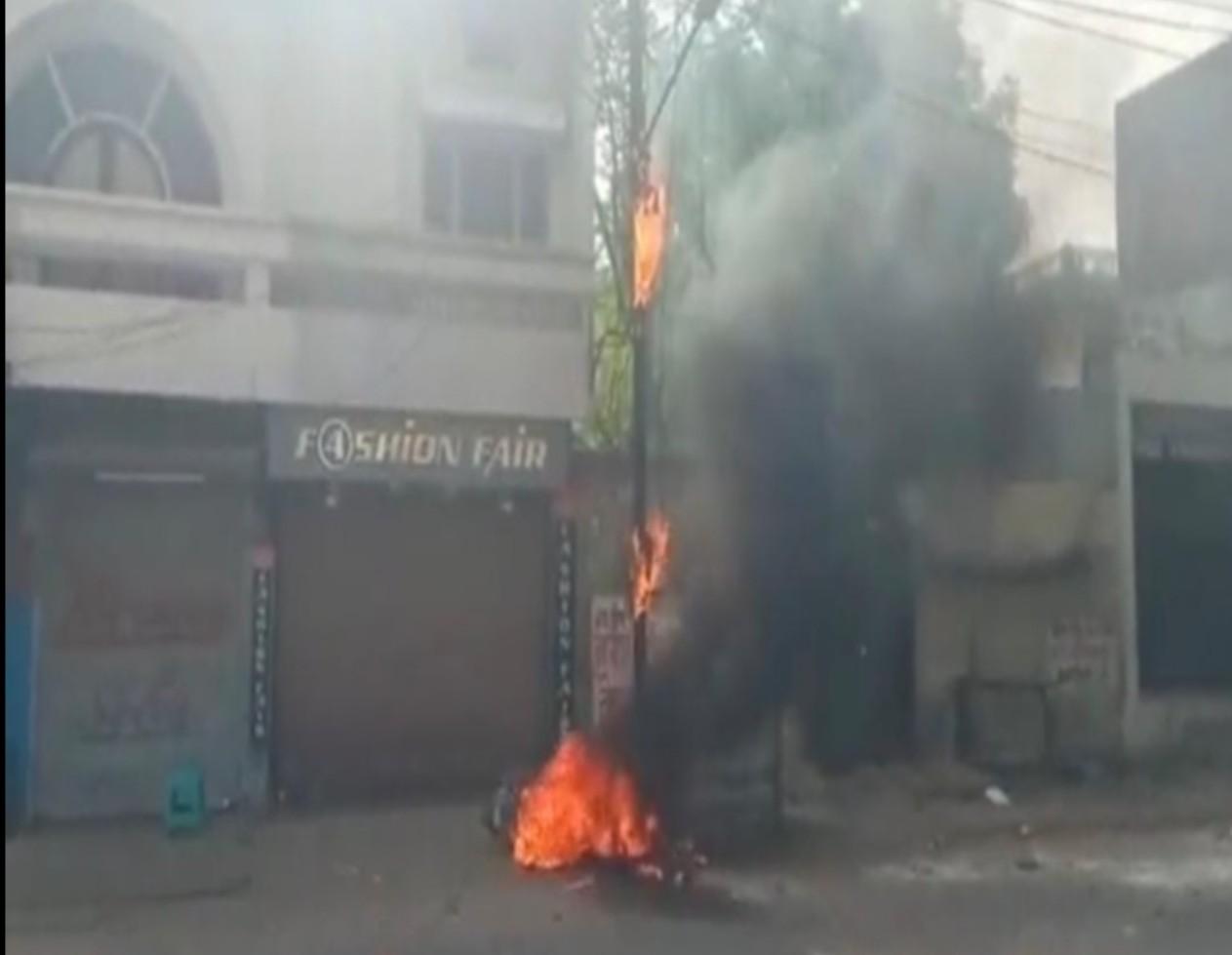 प्रयागराज के अटाला इलाके में जुमे की नमाज के बाद मुस्लिम पक्ष ने पथराव किया, जिसमें कई लोगों को चोटें आईं। उपद्रवियों और आक्रोशित भीड़ ने दुकान और बाइक को फूंकने के साथ पीएसी के ट्रक में भी आग लगा दी। मौके पर मौजूद पुलिसकर्मियों ने किसी तरह आग काबू की। उपद्रवियों ने बम भी चलाए।