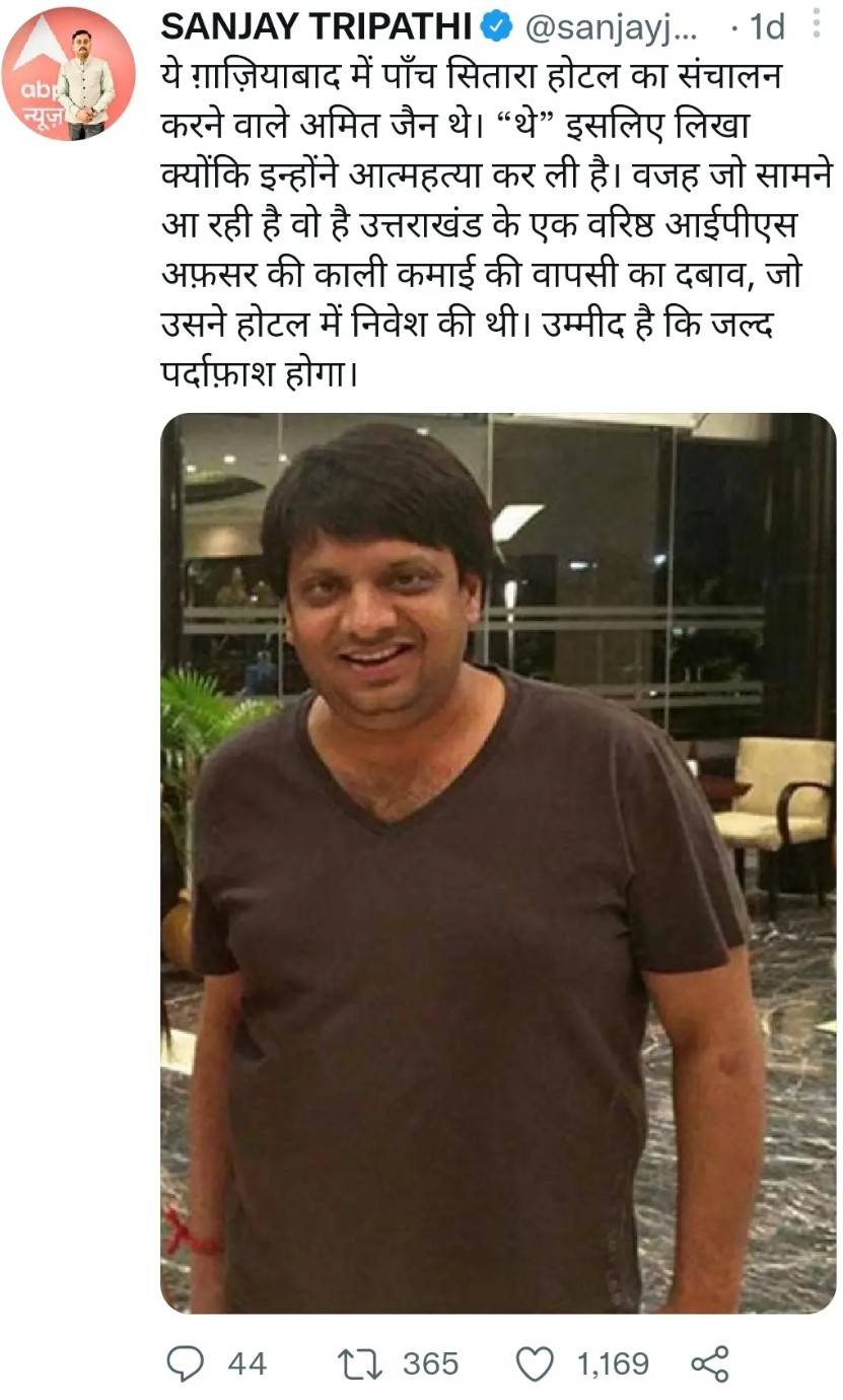 रेडिसन ब्लू होटल मालिक अमित जैन के स्यूसाइड के पीछे उत्तरांखड का आईपीएस?