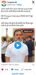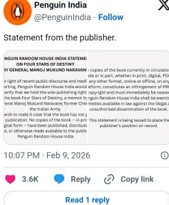 उनके पोस्ट में किताब का कवर और अमेजन का लिंक था.लोग प्री-ऑर्डर कर रहे थे. दूसरा ट्वीट फरवरी 2026 का है.पेंग्विन इंडिया ने कहा ‘किताब प्रकाशन की प्रक्रिया में नहीं गई है.कोई प्रिंट या डिजिटल कॉपी जारी नहीं हुई. जो भी घूम रही है, वह कॉपीराइट उल्लंघन है.’