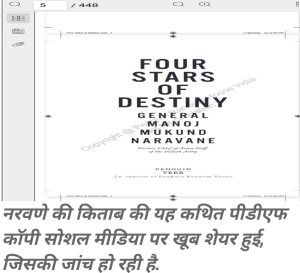 नरवणे की किताब की यह कथित पीडीएफ कॉपी सोशल मीडिया पर खूब शेयर हुई, जिसकी जांच हो रही है.