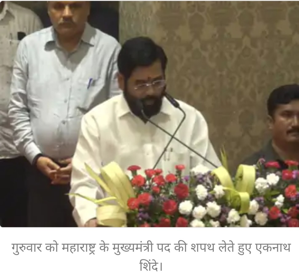 गुरुवार को महाराष्ट्र के मुख्यमंत्री पद की शपथ लेते हुए एकनाथ शिंदे।