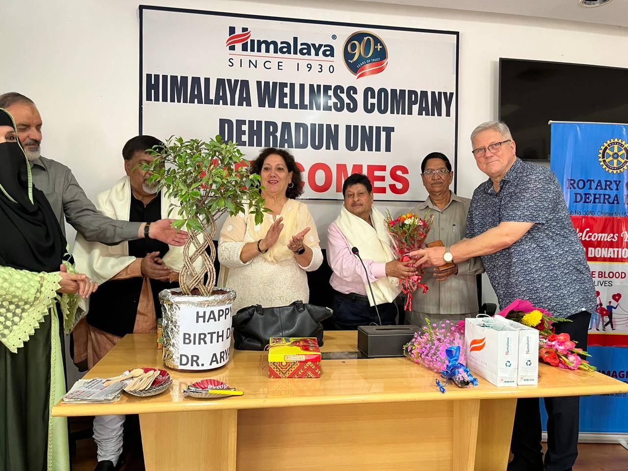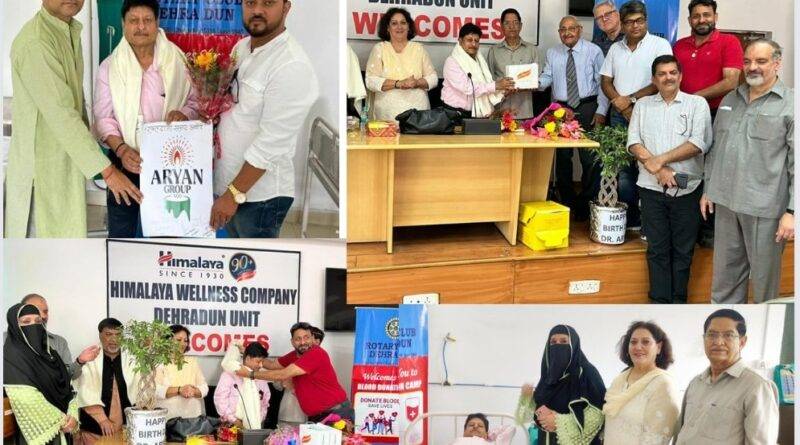 *इस अवसर पर हिमालय ड्रग के प्रेजीडेंट डॉक्टर एस फारूख,रोटरी क्लब देहरादून की प्रेजीडेंट पैट्रीशिया हिल्टन,वाईस प्रेजीडेंट आर के बक्शी,ब्रिगेडियर के जी बहल ,पूर्व प्रेजिडेंट नगमा फारूख,रोटेरियन डॉक्टर दिव्या नेगी घई तथा तरूण भाटिया ने अनिल वर्मा को जन्मदिवस का केक काटकर,उपहार व पुष्पगुच्छ भेंट कर तथा शाॅल पहनाकर सम्मानित किया ।*