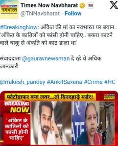 अंकित सक्सेना मामले में आरोपितों को मिली उम्रकैद पर अंकित की मां का कहना है कि वे कोर्ट के फैसले से संतुष्ट नहीं हैं। हत्यारों का जैसा कृत्य है,उस हिसाब से फांसी से कम सजा हो ही नहीं सकती। फैसले के खिलाफ उच्च न्यायालय में अपील करेंगें।