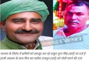 भाजपा के विरोध में क्षत्रियों को एकजुट कर रहे ठाकुर पूरन सिंह (बाएँ) पर दर्ज है हाजी अफसर के साथ मिल कर सतीश राजपूत (दाएँ) को गोली मारने की FIR