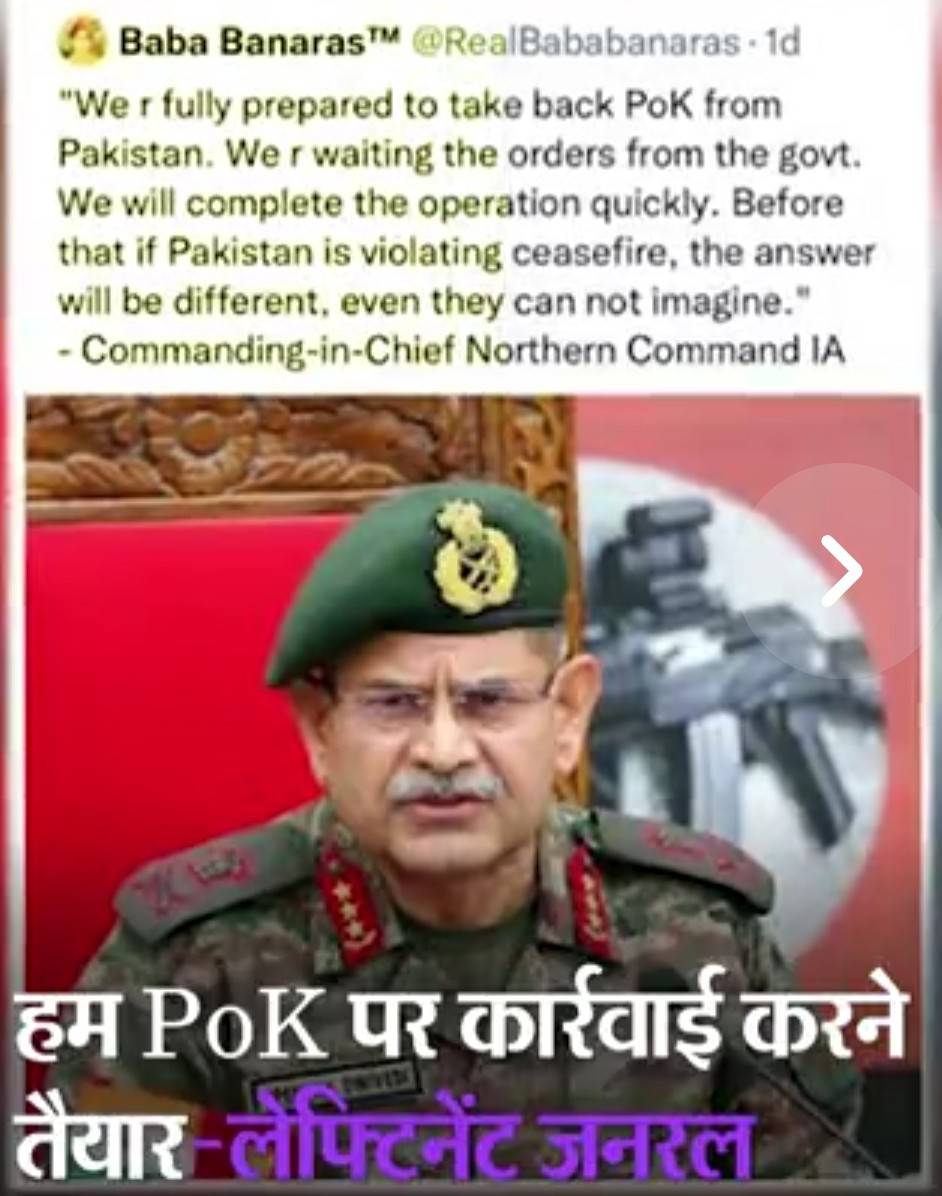 दरअसल, लेफ्टिनेंट जनरल उपेंद्र द्विवेदी ने 22 नवंबर को कहा था कि सरकार आदेश दे तो हम पाकिस्तान के कब्जे वाले कश्मीर (POK) को वापस लेने के लिए तैयार हैं।