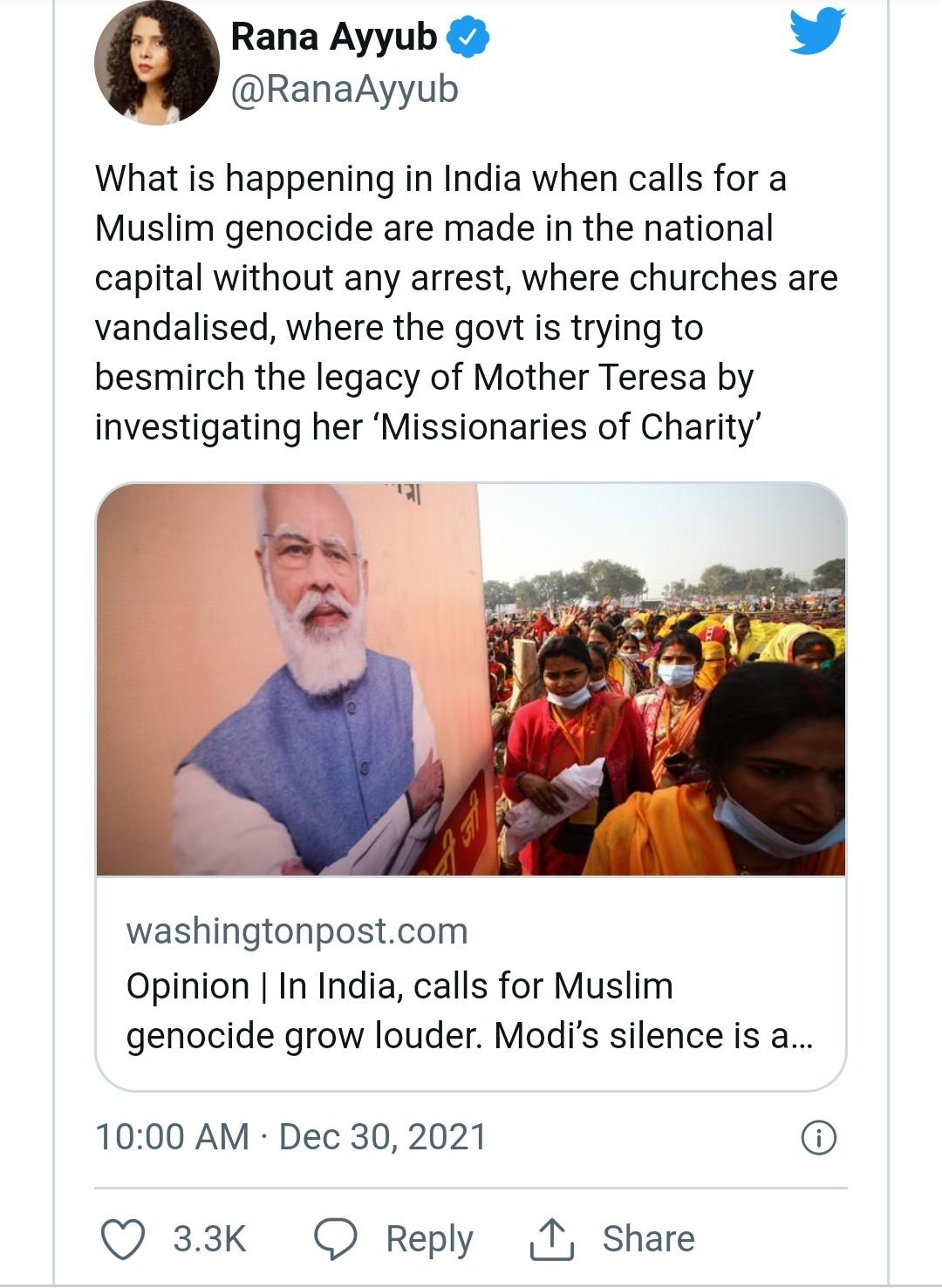 राना अयूब जैसी जहरीली पत्रकारों को भी अवसर मिल गया और उन्होंने भी एजेंडा फ़ैलाने में देर नहीं की: