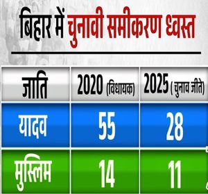 बिहार चुनाव’25 :3.45%राजपूतों के 34 विधायक,3.65%ब्राह्मणों के 14,यादव सबसे ज्यादा घाटे में