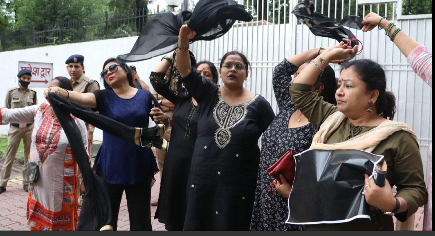 केंद्रीय महिला कल्याण व बाल विकास मंत्री स्मृति ईरानी के बीजापुर गेस्ट पहुंचने की भनख लगते ही प्रदेश महिला कांग्रेस से जुड़ी महिलाएं वरिष्ठ उपाध्यक्ष आशा मनोरमा डोबरियाल शर्मा के नेतृत्व में काले दुपट्टे और हाथों में चूड़ियां लेकर विरोध प्रदर्शन करने पहुंच गईं। इस दौरान उनकी पुलिस से हल्की झड़प भी हुई। विरोध प्रदर्शन कर रही महिला कार्यकर्ताओं का आरोप था कि केंद्रीय मंत्री स्मृति ईरानी ने संसद में कांग्रेस की राष्ट्रीय अध्यक्ष सोनिया गांधी के साथ दुर्व्यवहार कर उनका अपमान किया है।