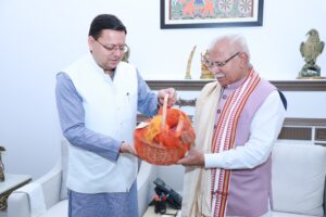 मुमं धामी ने खट्टर से मांगी विद्युत परियोजनाओं के विकास व प्रधानमंत्री आवास योजना (शहरी) में विशेष सहायता