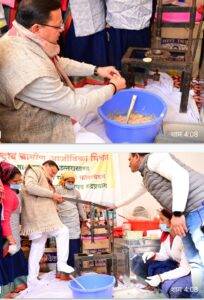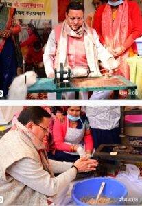 हाथ से महाप्रसाद बनाते हुए मुख्यमंत्री धामी ने कहा कि उन्होंने बचपन में घर के कार्यों में खूब हाथ बटाया है। बचपन में वो त्योहारों के समय अपनी माता जी के साथ स्थानीय पकवान बनाने में खूब सहयोग करते थे। वहीं सिलबट्टे पर कई बार अपनी माता जी के साथ मिलकर नमक भी पीसा है। आटा गूँथने से लेकर जंगल में घास काटने तक में उन्होंने हमेशा हाथ बटाया। इस अवसर पर उन्होंने महिलाओं से सरकार की महाप्रसाद योजना से जुड़ने के बाद आजीविका में हुए बदलाव की जानकारी भी ली।