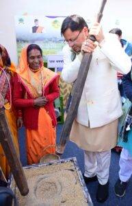 मुख्यमंत्री धामी ने पहाड़ की पारंपरिक वस्तुओं को बढ़ावा देने के उदेश्य से रांछ पर कालीन बुनाई, पहाड़ की पारंपरिक चक्की (जांदरा) चलाई, पैडल चरखे पर ऊन कताई, रिंगाल की टोकरी बुनने और दुर्लभ भोजपत्र पर कैलीग्राफी भी की । उन्होंने महिला समूहों के साथ विभिन्न क्रियाकलाप कर स्थानीय संस्कृति समझी और अपनी पुरानी यादें साझा की।