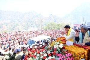 धामी का गोचर में रोड शो,चार अरब की 604 परियोजनाओं का उद्घाटन और शिलान्यास