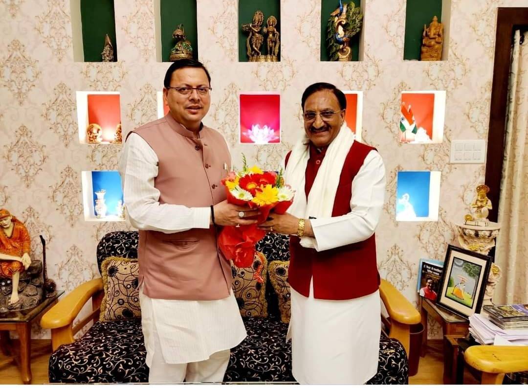 धामी ने पूर्व मुख्यमंत्रियों के निवास जा दी दीपावली की शुभकामनाएं