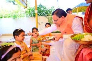 महानवमी पर मुख्यमंत्री धामी ने किया कन्या पूजन,यज्ञ, सुनी जनसमस्याएं