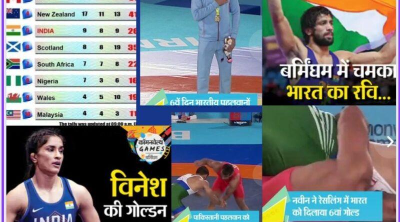 कॉमनवेल्थ गेम्स का नौवां दिन:नवीन कुमार ने देश को दिन का तीसरा गोल्ड दिलाया, फाइनल में पाकिस्तानी पहलवान को पटखनी दी