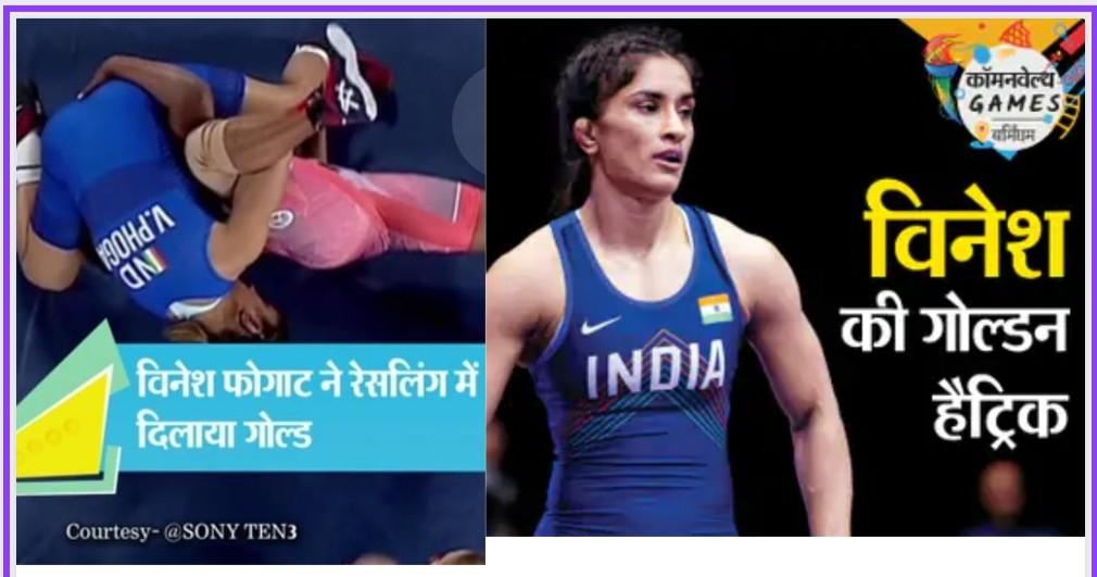 नवीन से पहले विनेश फोगाट ने विमेंस 50 KG वेट कैटेगरी में भारत को गोल्ड दिलाया। विनेश का ये कॉमनवेल्थ गेम्स में लगातार तीसरा गोल्ड है। उन्होंने 2014 और 2018 में भी सोना जीता था।
