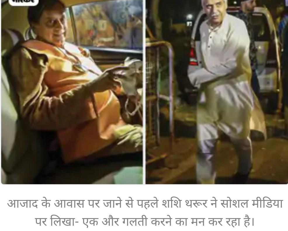 आजाद के आवास पर जाने से पहले शशि थरूर ने सोशल मीडिया पर लिखा- एक और गलती करने का मन कर रहा है।