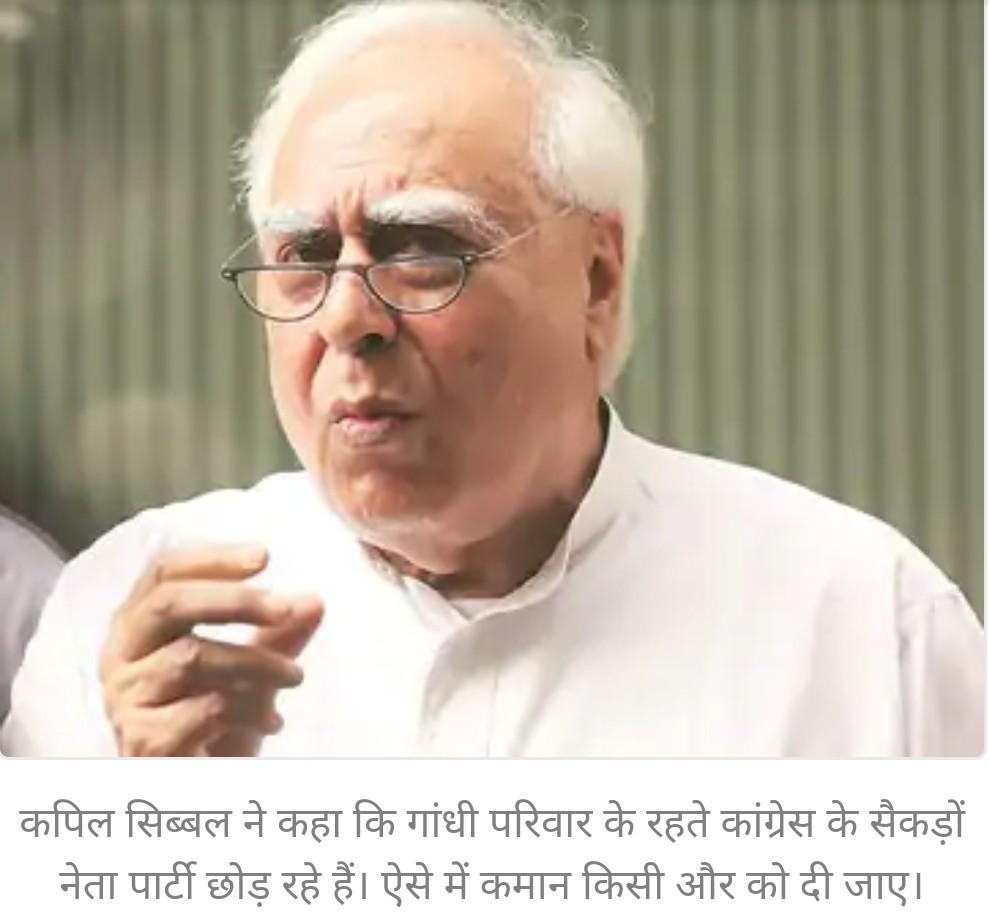 कपिल सिब्बल ने कहा कि गांधी परिवार के रहते कांग्रेस के सैकड़ों नेता पार्टी छोड़ रहे हैं। ऐसे में कमान किसी और को दी जाए।