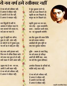 पहले आप कविता ‘ये नव वर्ष हमें स्वीकार नहीं’ के शब्दों का आनंद लें, फिर कविता के अंत में इसके विवाद के बारे में विस्तार से पढेंगें……