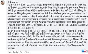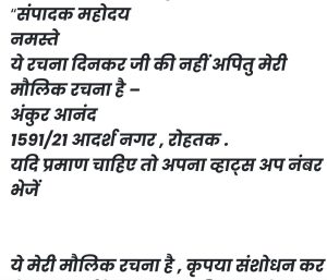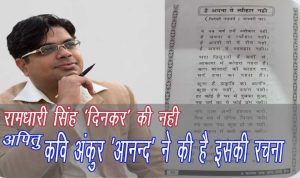 उनके अनुसार अंकुर ने इसकी रचना दिसंबर 2012 में की थी लेकिन 2017 के बाद से अचानक न जाने किसने उनकी इस रचना को ‘दिनकर’ जी के नाम के साथ जोड़ दिया और फिर धीरे – धीरे सोशल मीडिया पर यह ‘दिनकर’ के नाम के साथ वायरल हो गई। अंकुर के अनुसार उन्होंने इसके बारे में सोशल मीडिया के सभी प्लेटफार्म पर अनेक बार अपना विरोध दर्ज कराया है।