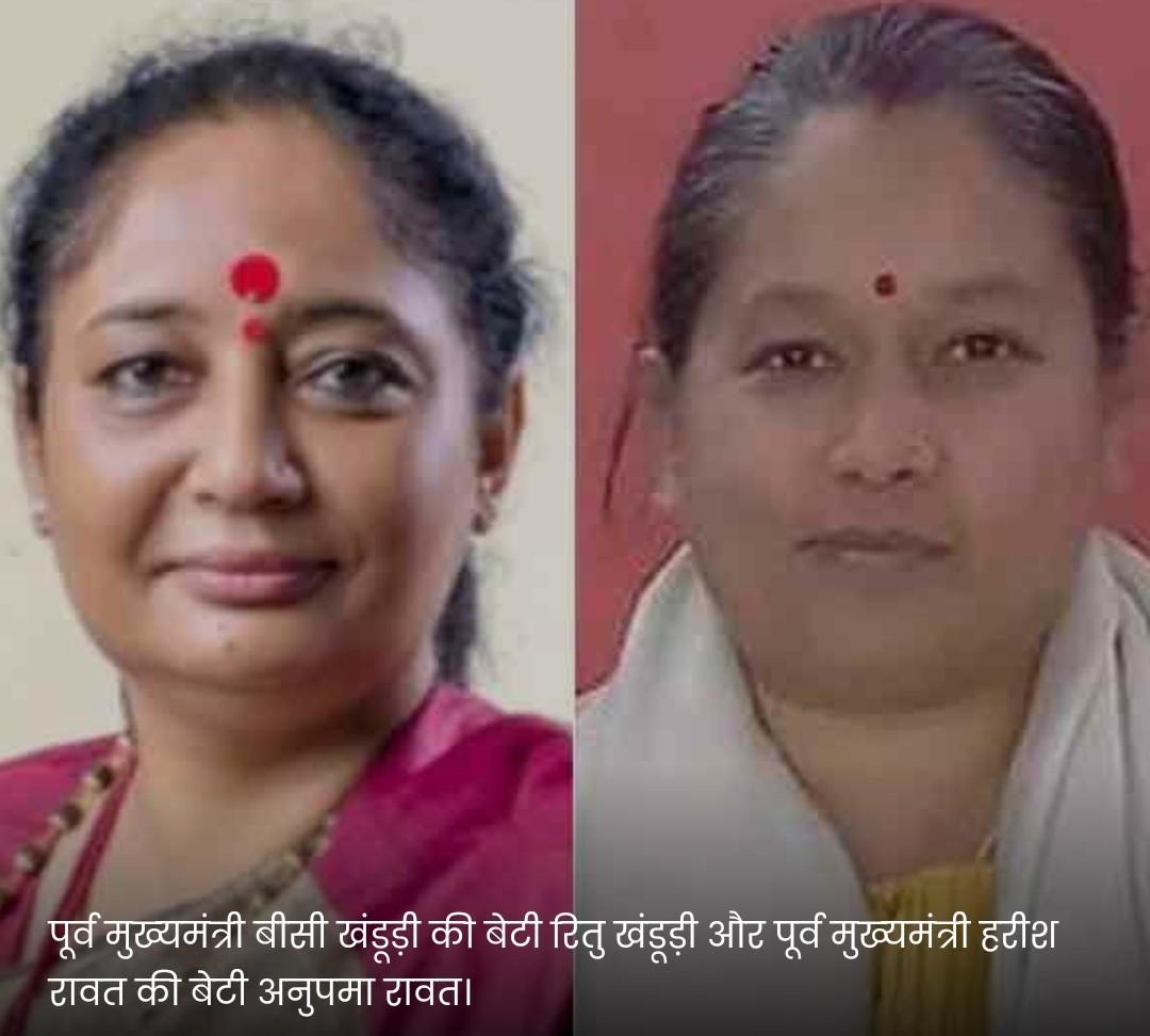 पूर्व मुख्यमंत्री जनरल बीसी खंडूड़ी की बेटी ऋतु खंडूड़ी और पूर्व मुख्यमंत्री हरीश रावत की बेटी अनुपमा रावत।