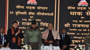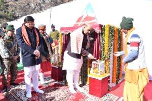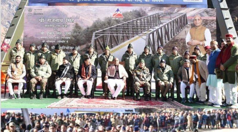 देहरादून 19 जनवरी 2024 । रक्षा मंत्री राजनाथ सिंह ने आज सीमांत क्षेत्र जोशीमठ ढाक से बीआरओ निर्मित 35 अवस्थापना परियोजनाएं देश को समर्पित की। इसमें सात राज्यों की 06 सड़कें और 29 ब्रिज शामिल है। परियोजनाएं बीआरओ ने 670 करोड़ की लागत से पूरी की हैं। कार्यक्रम में मुख्यमंत्री पुष्कर सिंह धामी और गढवाल सांसद तीरथ सिंह रावत रक्षामंत्री भी रहे।
