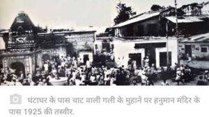 घंटाघर के पास चाट वाली गली के मुहाने पर हनुमान मंदिर के पास 1925 की तस्वीर.