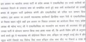रविवार को बालावाला में आयोजित कार्यक्रम में उन्होंने भाजपा की सदस्यता ग्रहण की, उनके साथ उनके तमाम समर्थक भी भाजपा में शामिल हुए। कार्यक्रम को संबोधित करते हुए प्रदेश अध्यक्ष और सांसद महेंद्र भट्ट ने कहा कि भाजपा का कुनबा देश प्रदेश में तेजी से बढ़ रहा है । भाजपा की नीतियां सर्व समाज को पसंद आ रही हैं। साथ कहा कि एसपी सिंह के पार्टी में आने से संगठन और अधिक मजबूत बनकर उभरेगा।