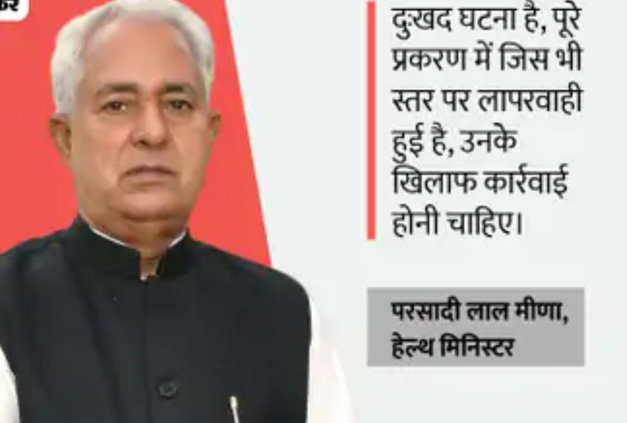 वहीं, चिकित्सा मंत्री परसादी लाल मीणा कहना है कि दुःखद घटना है, पूरे प्रकरण में जिस भी स्तर पर लापरवाही हुई है, उनके खिलाफ कार्रवाई होनी चाहिए।