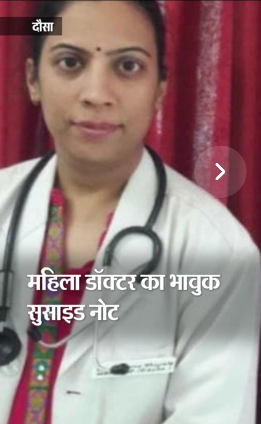 राजस्थान के हेल्थ मिनिस्टर परसादी लाल मीणा का विधानसभा क्षेत्र लालसोट (दौसा) एक बार फिर सुर्खियों में है। मंगलवार को एक महिला डॉक्टर के सुसाइड के बाद राजस्थान में यह मामला तूल पकड़ता जा रहा है। इधर, देर रात महिला डॉक्टर का सुसाइड नोट सामने आने के बाद डॉक्टर्स आक्रोशित हो गए हैं और विरोध कर रहे हैं। बुधवार को राजस्थान के सभी निजी हॉस्पिटल्स ने 24 घंटे का कार्य बहिष्कार का ऐलान किया है।