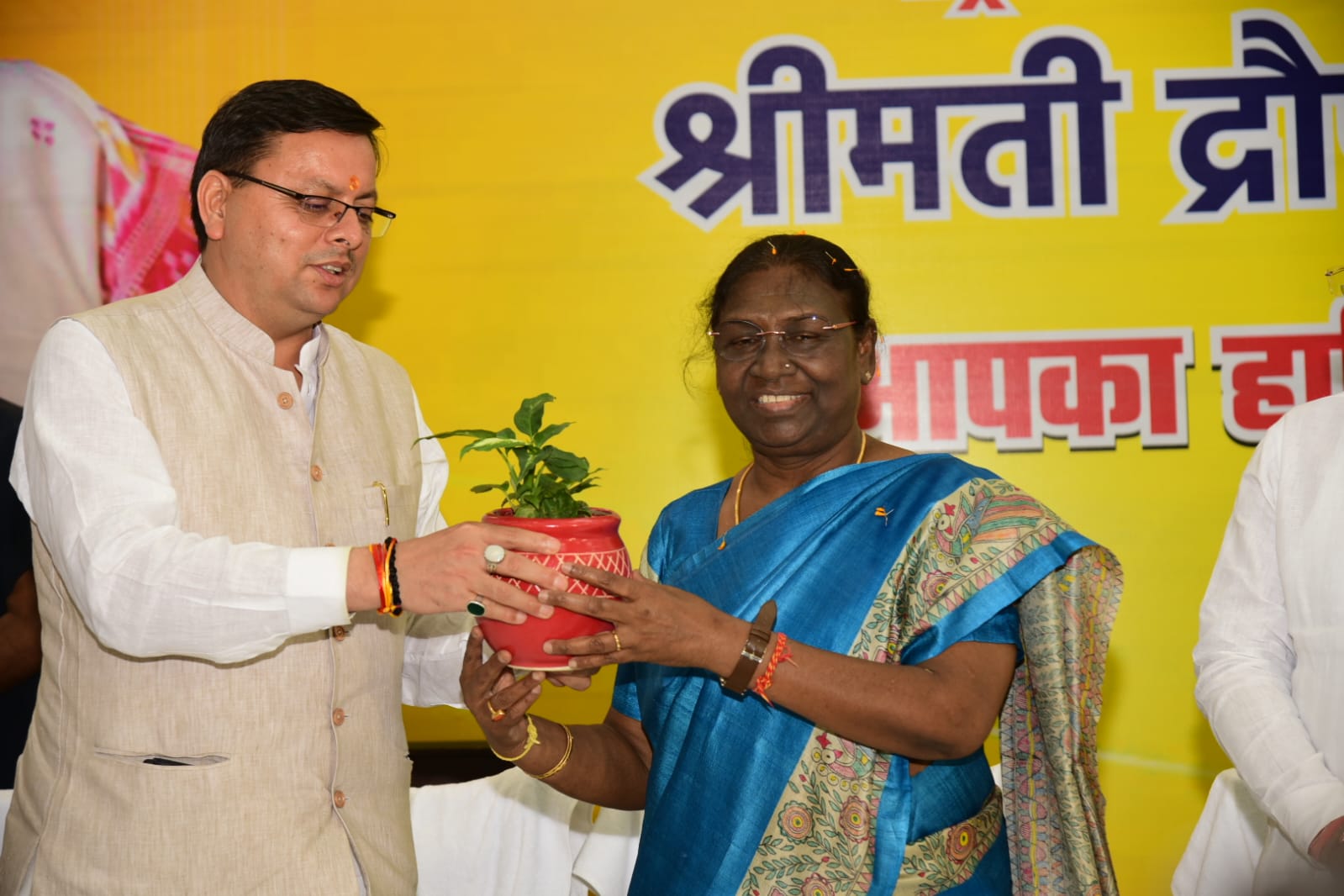 उन्होंने इस दौरान भाजपा के विधायकों और सांसदों के अलावा अन्य दलों के विधायक, सांसदों से भी अपने समर्थन की अपील की। कार्यक्रम के दौरान मुख्यमंत्री पुष्कर सिंह धामी ने कहा कि द्रौपदी मुर्मू को राष्ट्रपति पद का प्रत्याशी बनाए जाने से एक बार फिर साफ हो गया है कि प्रधानमंत्री नरेंद्र मोदी के नेतृत्व में भाजपा समाज के अंतिम छोर पर बैठे व्यक्ति के विकास पर फोकस कर रही है।