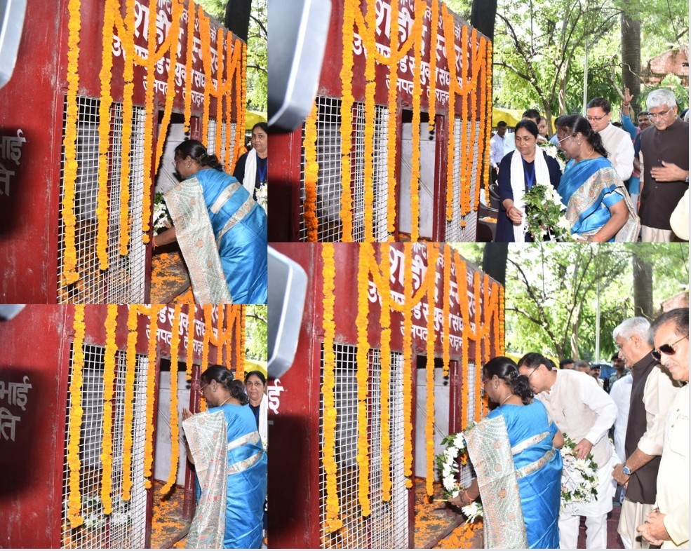 रास्ते में भी मुर्मू का जोरदार स्वागत किया गया। उसके बाद मुर्मू कचहरी स्थित शहीद स्थल पहुंची और शहीदों को श्रद्धाजंलि दी। फिर उन्होंने मुख्य सेवक सदन में आयोजित कार्यक्रम में प्रतिभाग किया। इस दौरान कैबिनेट मंत्री प्रेमचंद अग्रवाल, गणेश जोशी, डॉक्टर धन सिंह रावत, रेखा आर्या, चंदन रामदास।