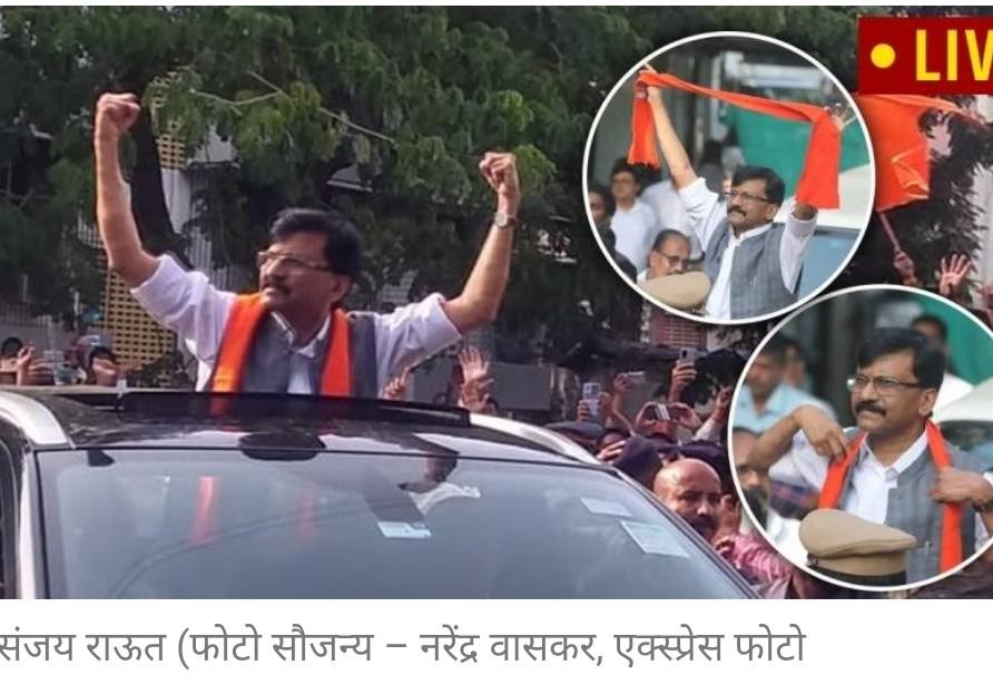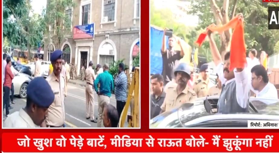 चलती कार पर भगवा गमछा लहराते ईडी दफ्तर पहुंचे संजय राउत