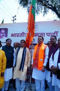राम नवमी और पार्टी के स्थापना दिवस के अवसर पर भाजपा मुख्यालय में आयोजित ध्वजारोहण कार्यक्रम में उन्होंने पार्टी के सभी महापुरुषों श्यामा प्रसाद मुखर्जी, पंडित दीन दयाल उपाध्याय, अटल बिहारी वाजपेयी तथा लाल कृष्ण आडवाणी को नमन करते हुए कहा कि आज मोदी के नेतृत्व में भाजपा विश्व का सबसे बड़ा संगठन बना हुआ है। हमारे प्रयासों का प्रतिफल है कि अत्यंत गर्व से 500 वर्ष के बाद हम राम नवमी का पर्व अयोध्या में प्रभु श्री रामजन्मभूमि मंदिर में भी मना रहे हैं। हम राष्ट्र प्रथम, संगठन द्वितीय और व्यक्ति अंतिम के सिद्धांत पर काम करने वाली पार्टी है। यही कारण है कि पार्टी के पथ प्रदर्शकों के बताए रास्ते पर चलते हुए देश में अनेक ऐतिहासिक कार्य प्रधानमंत्री मोदी के नेतृत्व में सरकार ने किए हैं जिनमें कश्मीर से धारा 370 हटाना, तीन तलाक समाप्ति और श्री राम मंदिर निर्माण के बाद वक्फ संशोधन सम्मिलित है। इसी तरह हमारी सरकारों ने समाज के अंतिम व्यक्ति तक सरकारी योजनाओं अटल आयुष्मान योजना से, गरीब कल्याण अन्न योजना से, करोना में सबको टीका लगाकर, आवास, बिजली, पानी, गैस सिलेंडर आदि की सुविधा का लाभ पहुंचाया है।