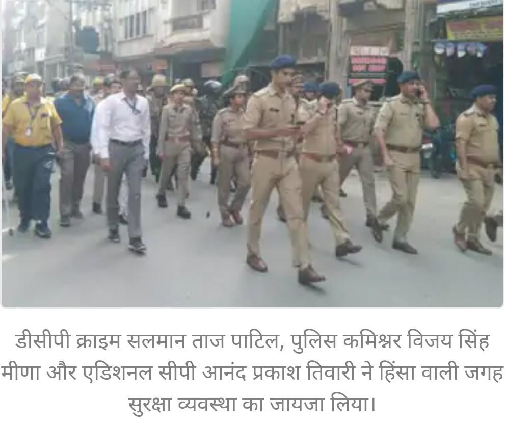 डीसीपी क्राइम सलमान ताज पाटिल, पुलिस कमिश्नर विजय सिंह मीणा और एडिशनल सीपी आनंद प्रकाश तिवारी ने हिंसा वाली जगह सुरक्षा व्यवस्था का जायजा लिया।