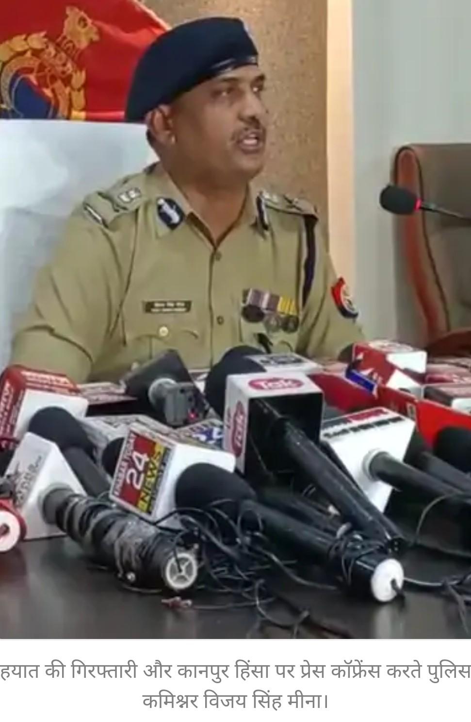 कानपुर के बेकनगंज में हुई हिंसा के मास्टरमाइंड हयात जफर को गिरफ्तार किया गया है। पुलिस कमिश्नर विजय सिंह मीना शनिवार दोपहर मीडिया के सामने आए। उन्होंने कहा कि कानपुर का माहौल खराब करने वालों पर NSA और गैंगस्टर की कार्रवाई की जाएगी। उनकी संपत्तियों पर बुलडोजर चलाया जाएगा।